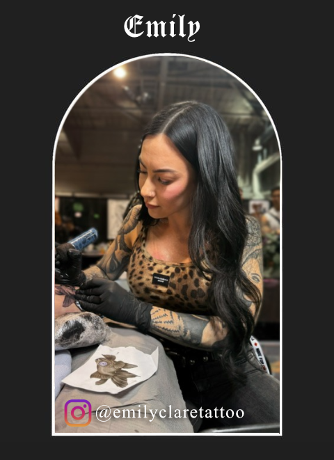 Emily has had a lifelong love for the arts and during her time pursuing further art education at ACAD, she was introduced to the medium of tattooing. Since then, tattooing has become not only her passion, but her main focus in life. Emily specializes in the neo-traditional style and focuses on larger scale works centred around the female/ male figure, animals, botanicals, and anything vintage. Heavily influenced by her love of the Baroque era, you can see many motifs taken from this period through out her work. Aiming to create not only beautiful tattoos, Emily strives to push herself past her boundaries and constantly evolve through her artwork. Not only does she have a deep love for her craft, Emily enjoys being able to connect with her clients and translate their thoughts and ideas to create custom pieces unique to each individual. Although the majority of her portfolio consists of larger pieces, Emily is always open to smaller works and enjoys both colour and black & grey projects.